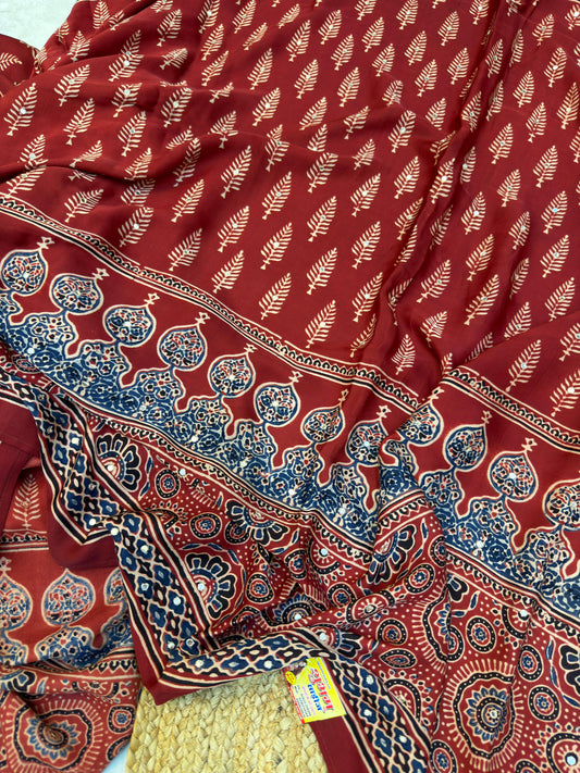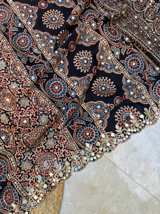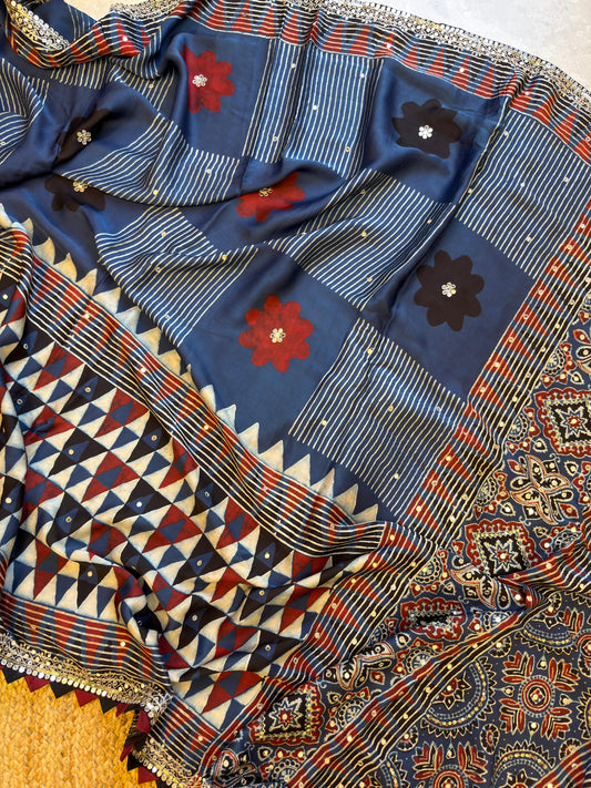Ajrakh and block printing are two distinct but related textile printing techniques that originate from India, particularly from regions like Gujarat and Rajasthan. Both are known for their intricate designs and vibrant colors, and they represent traditional craft techniques that have been practiced for centuries.