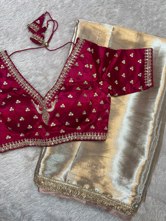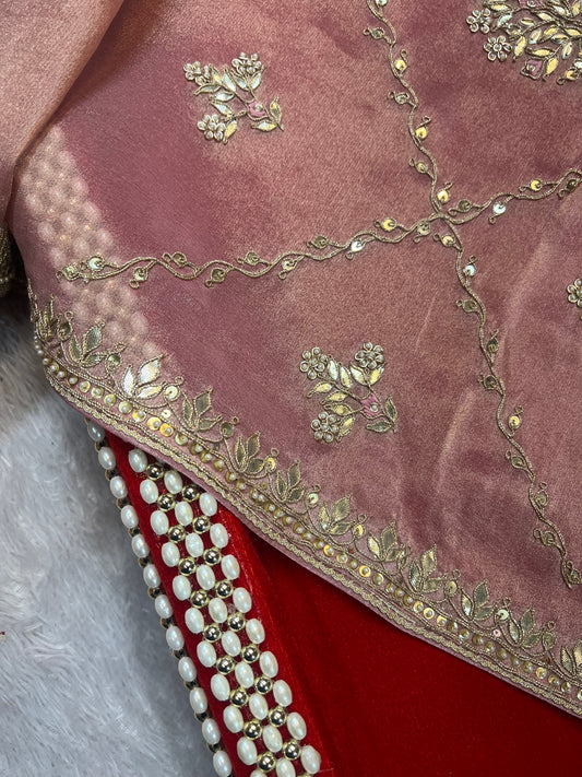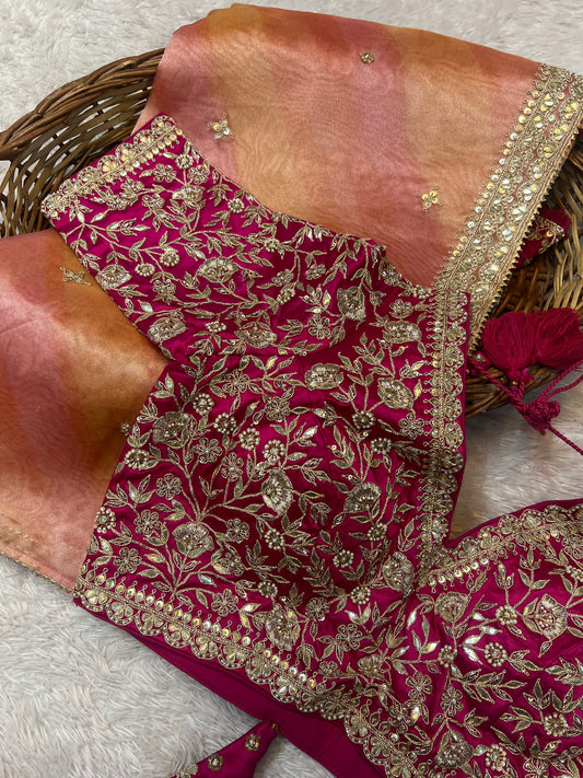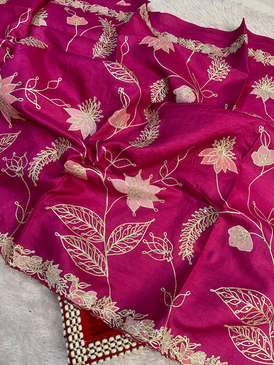 Rani Pink Zardosi Saree